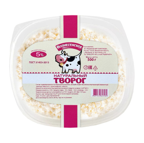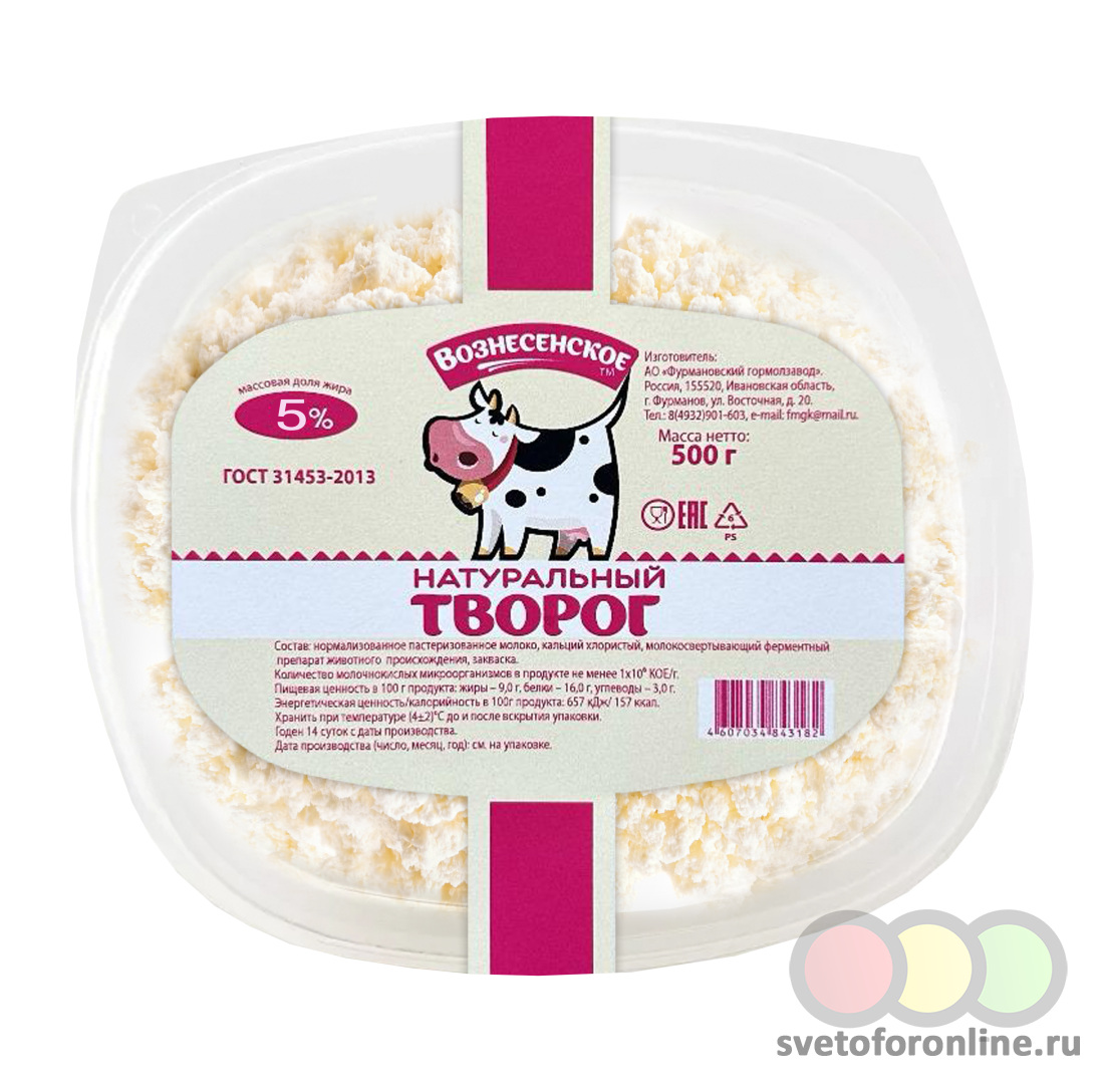 Творог натуральный ГОСТ МДЖ 5% ,БЗМЖ 500 гр. - Купить в магазине "Светофор" город Павловский Посад, ул.1-я Мишутинская, д.76А